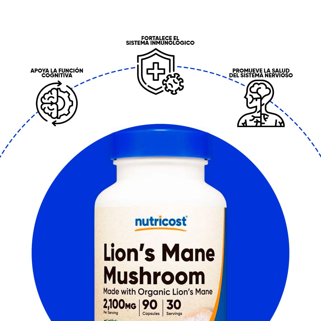 La Melena de León de Nutricost es un apoyo natural para tu mente: ayuda a mejorar la concentración, potenciar la memoria y mantener tu cerebro activo y despierto durante el día. También es conocida por reforzar el estado de ánimo y aliviar la sensación de fatiga mental.
