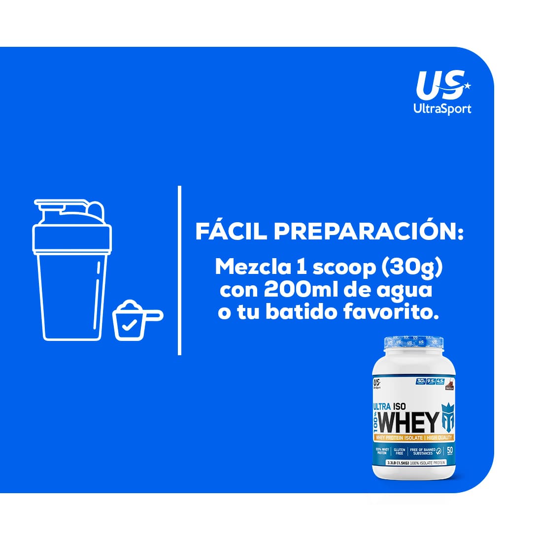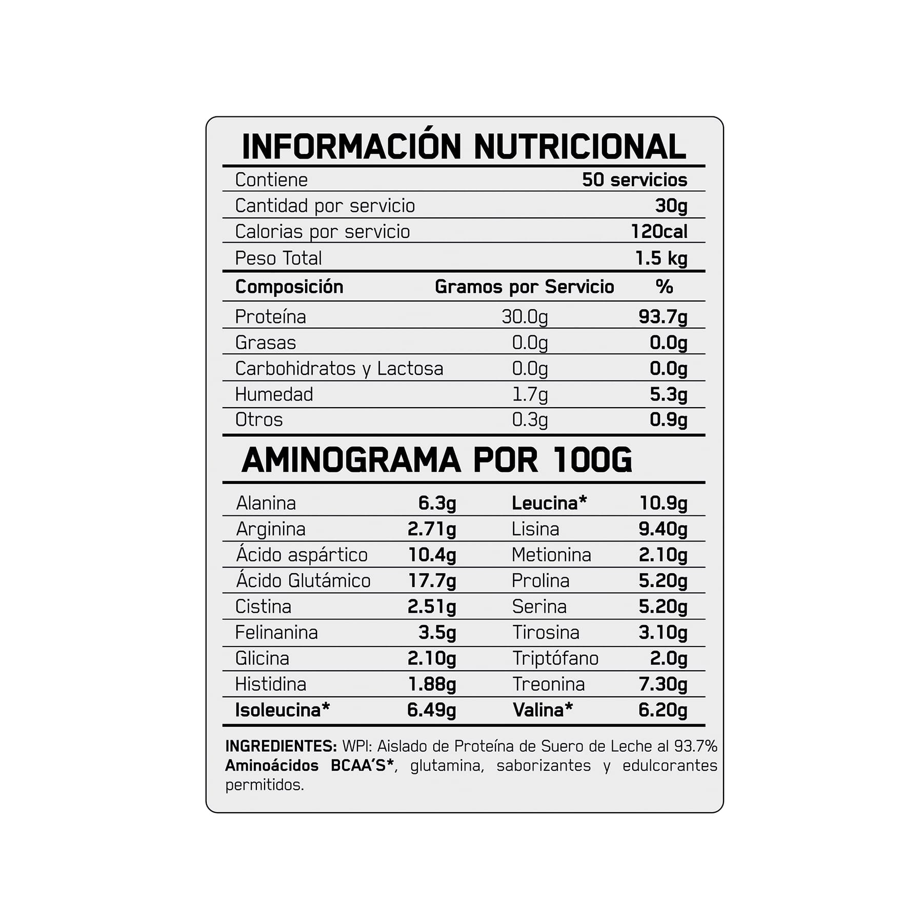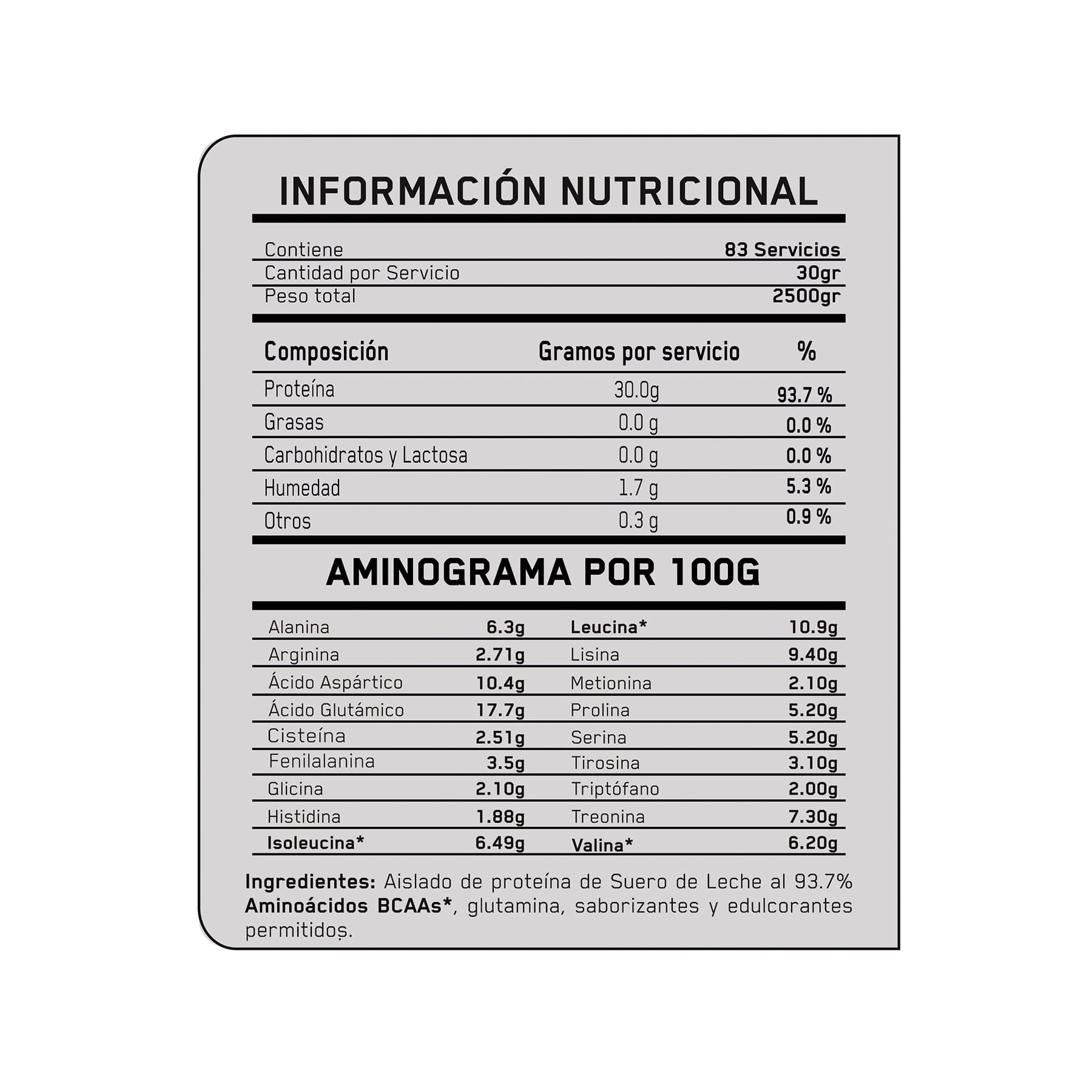 Proteína aislada de suero de leche, de calidad premium por su rápida absorción.